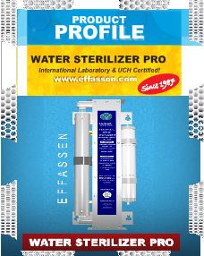 ANSWER : Sterile water means water that contain no germs. Effassen International Enterprises Ltd is one the leading manufacturers of water treatment equipment that uses ultraviolet light to kill every living germ (bacteria, fungi, nematode, virus and protozoa) in water. Effassen Water Sterilizer Pro is an electronic equipment designed to sterilize water with UV technology and membrane filter seperation.